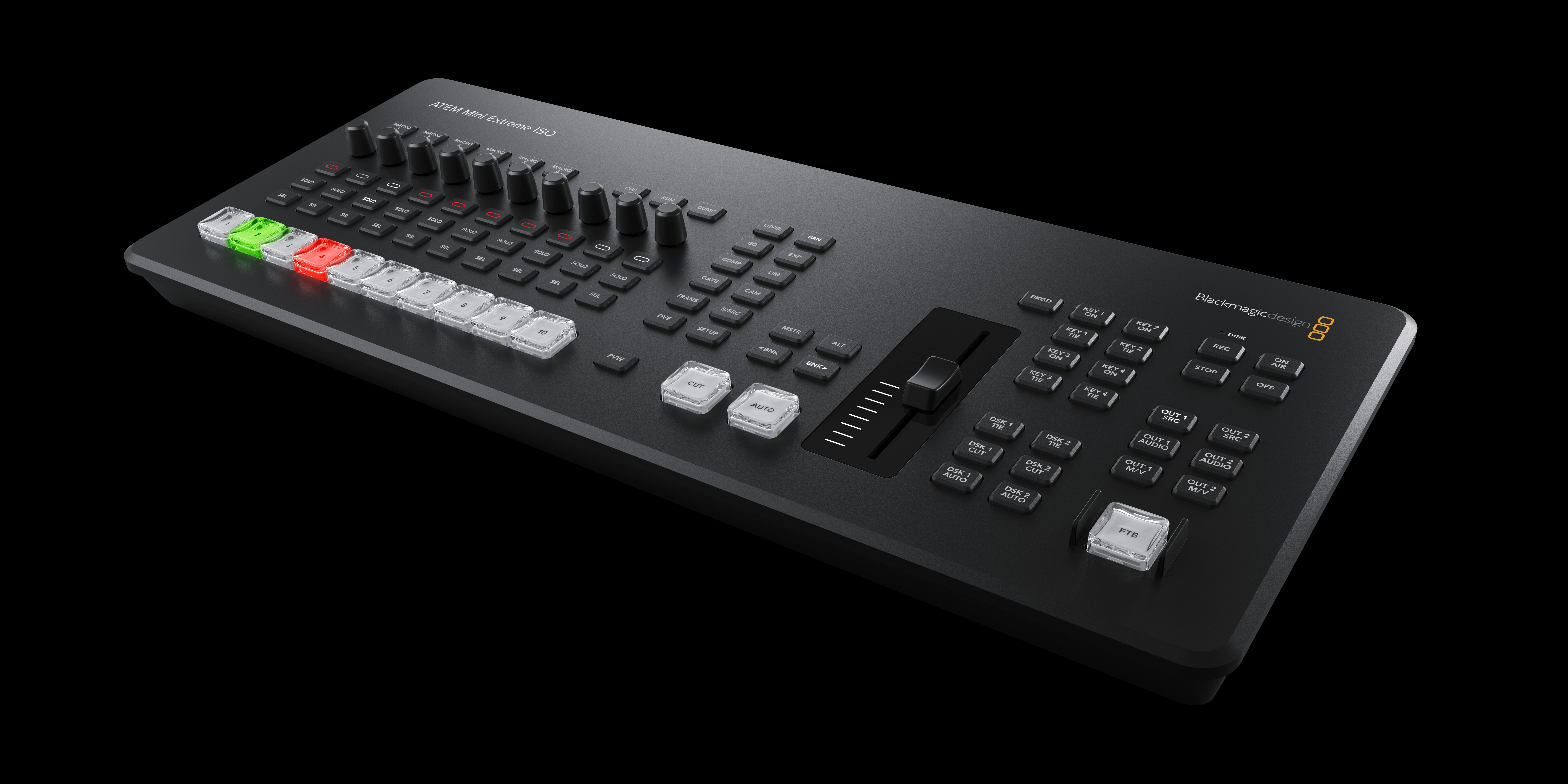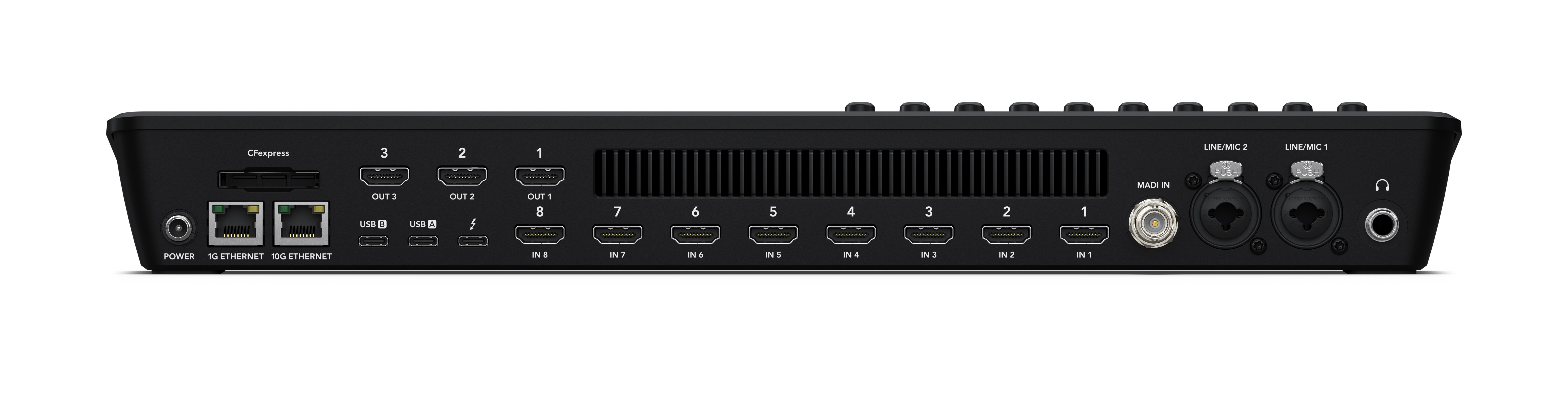 ATEM Mini Extreme ISO G2 is a powerful yet compact live switcher for building a high-end broadcast studio. Get an expanded professional style control panel with built in streaming, 8 standards converted HDMI inputs, 3 independent HDMI outputs, built in streaming engine, multi-view, CFexpress and Thunderbolt for record/playback. There is also 10G Ethernet for fast network storage access, XLR audio inputs, USB webcam, DVE, chroma key, media player and ISO recording of all 8 video inputs