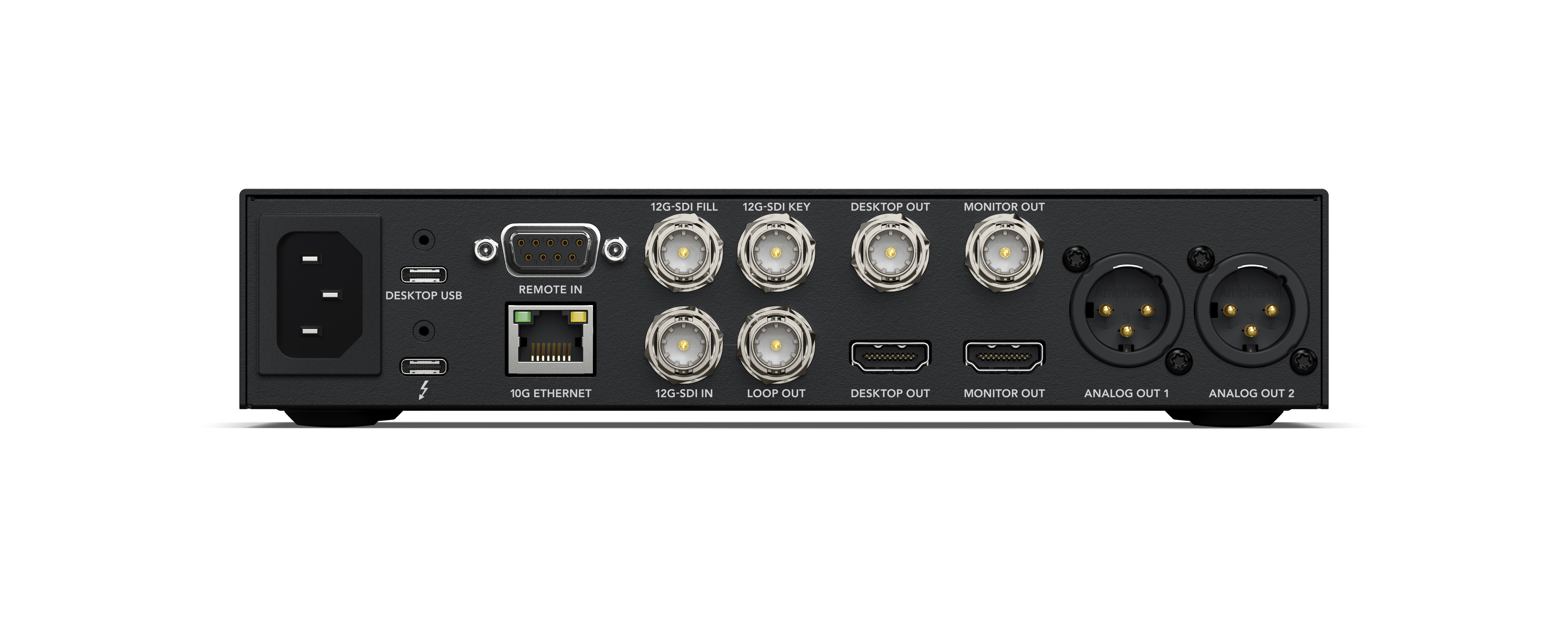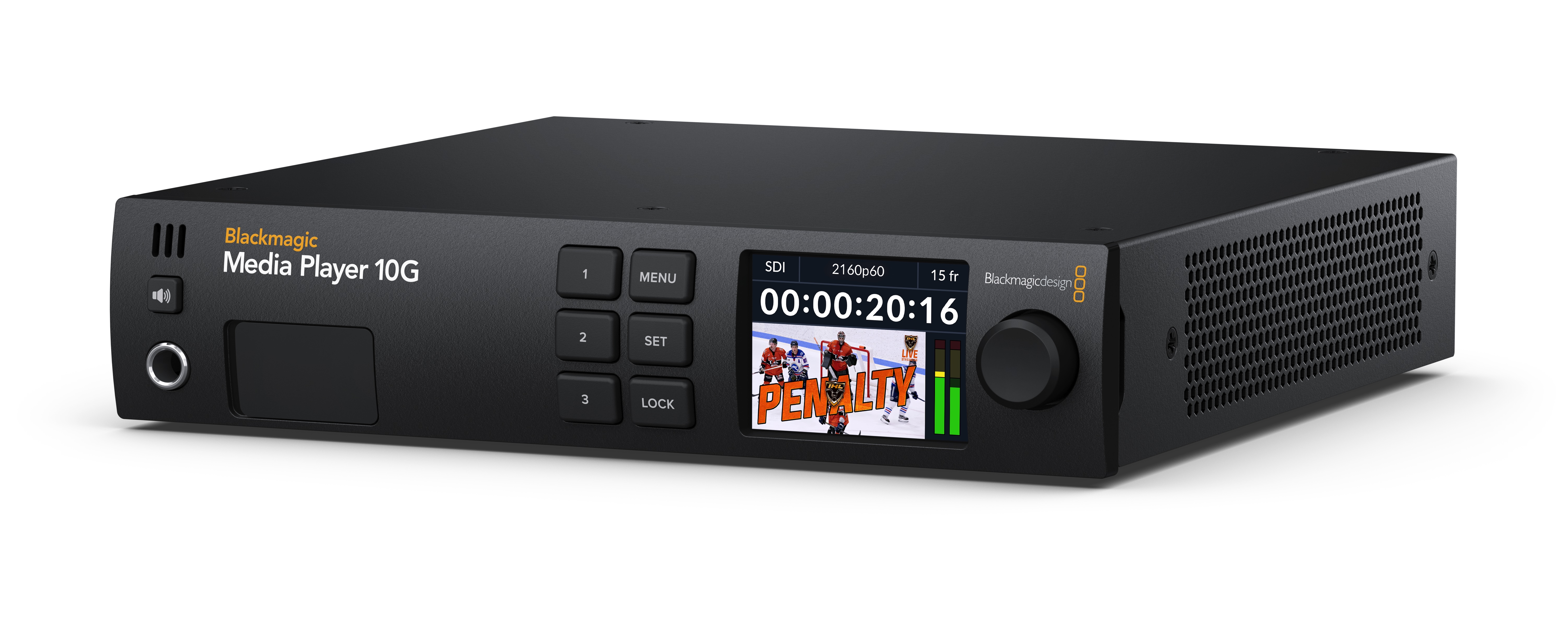 Blackmagic Media Player 10G is a powerful capture and playback solution packed with the latest broadcast technology! You get dual 12G-SDI outputs for fill and key playback, 12G-SDI capture, Extended Desktop and 10G Ethernet that lets customers use DaVinci Resolve as a media player and replay solution for the live production and broadcast markets, all over a single Thunderbolt connection.