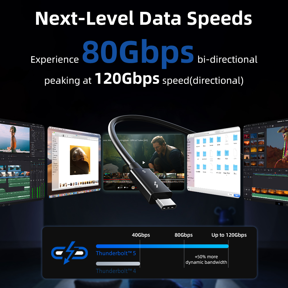 Supports Bandwidth Boost up to 120Gbps (3x more than Thunderbolt 4)