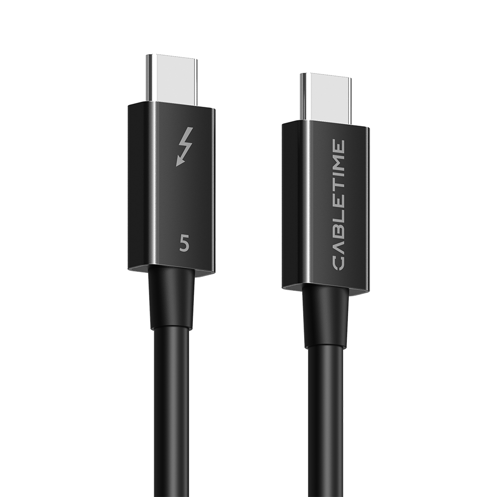 The CABLETIME Thunderbolt™ 5 Cable delivers next-generation performance for demanding workflows and high-bandwidth applications. Intel certified and engineered for maximum reliability, this cable supports up to 120Gbps Bandwidth, 8K video output, and 240W Power Delivery, making it ideal for creators, gamers, and professionals seeking the highest level of connectivity. Whether you're connecting to a Thunderbolt 5 dock, eGPU, high-speed storage, or a dual 6K/8K monitor setup, CABLETIME ensures stable, ultra-fast performance with full backwards compatibility with Thunderbolt 4, USB4, and USB-C devices.