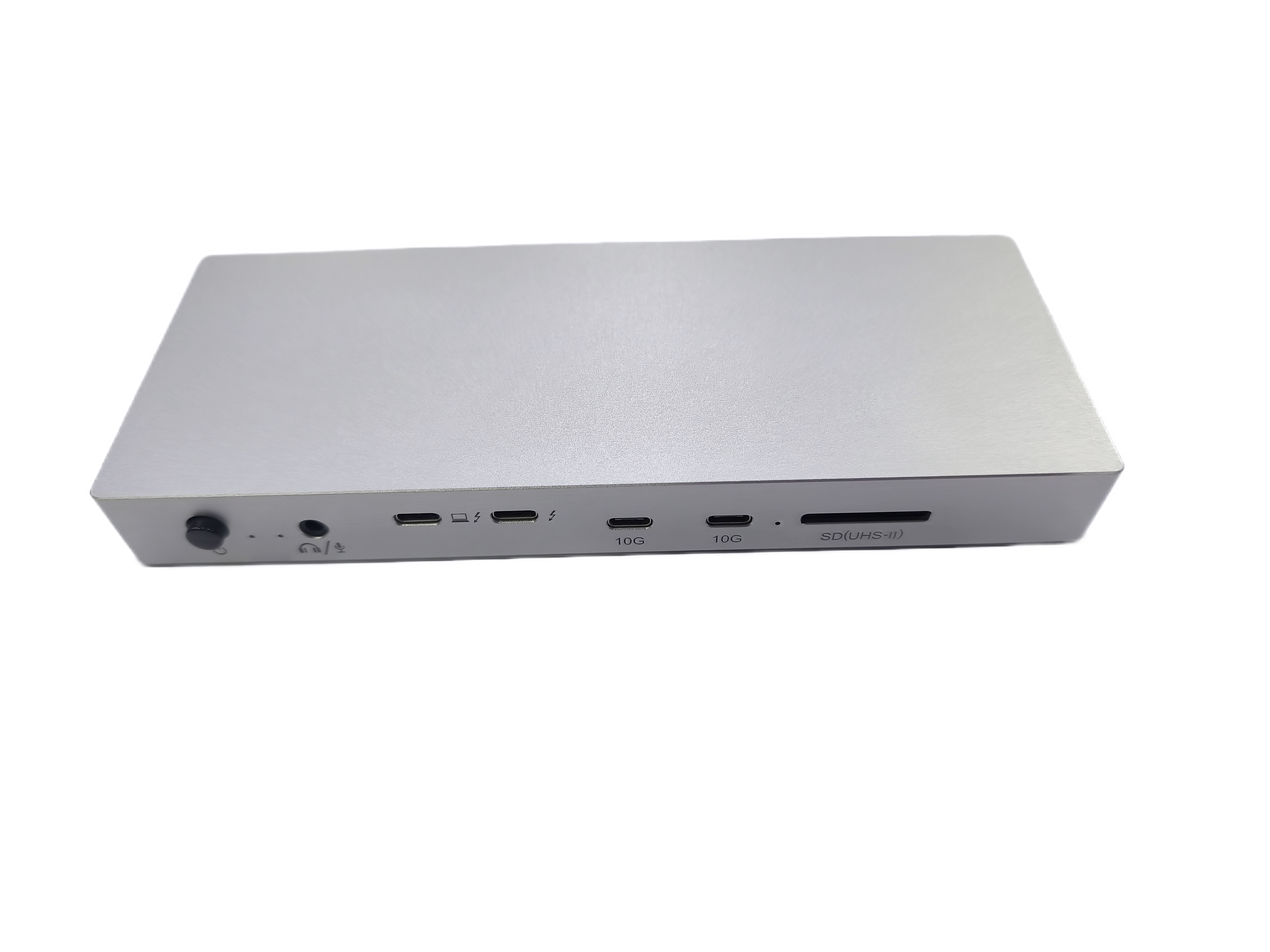 This product use Thunderbolt Barlow Ridge Module , provide different I/O port for data transmission(USB A 、USB C、SD、RJ45), and with NVMe SSD storage function, compatible with Thunderbolt 5 laptops and PC computer, supports the computer‘s picture, video, sound and other content on the TV, projector and other display devices.