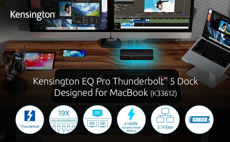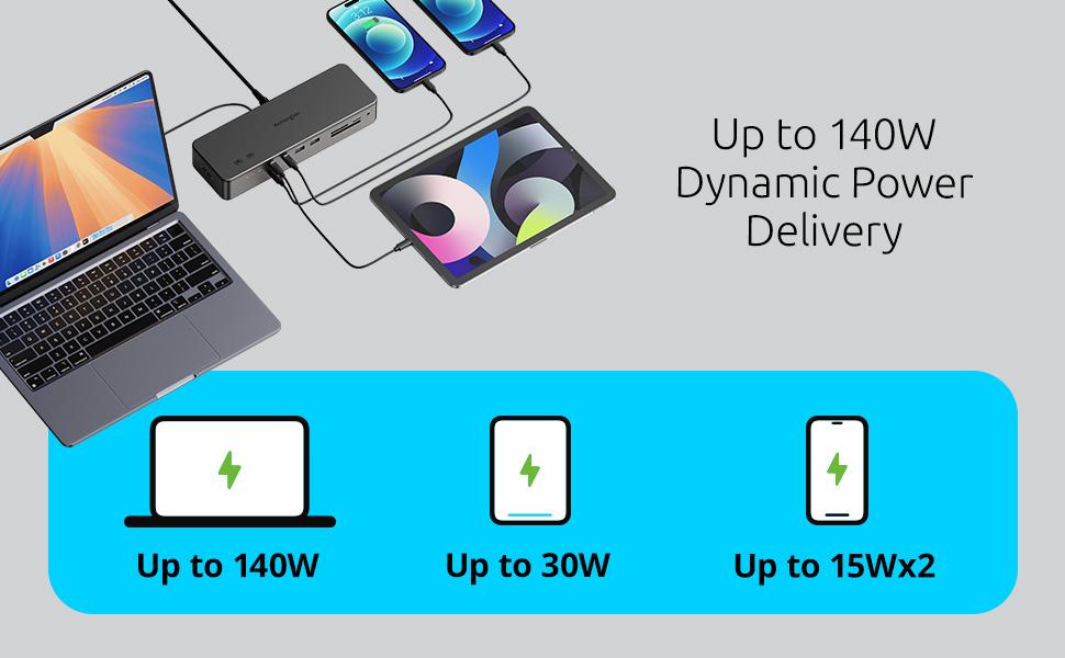• Up to 140W Dynamic Power Delivery - Perfect for demanding workstations, the single-cable Thunderbolt™ 5 solution ensures seamless power and connectivity with up to 140W Power Delivery. Includes Konstant Charge™, enabling connected devices to charge even when your laptop is undocked.