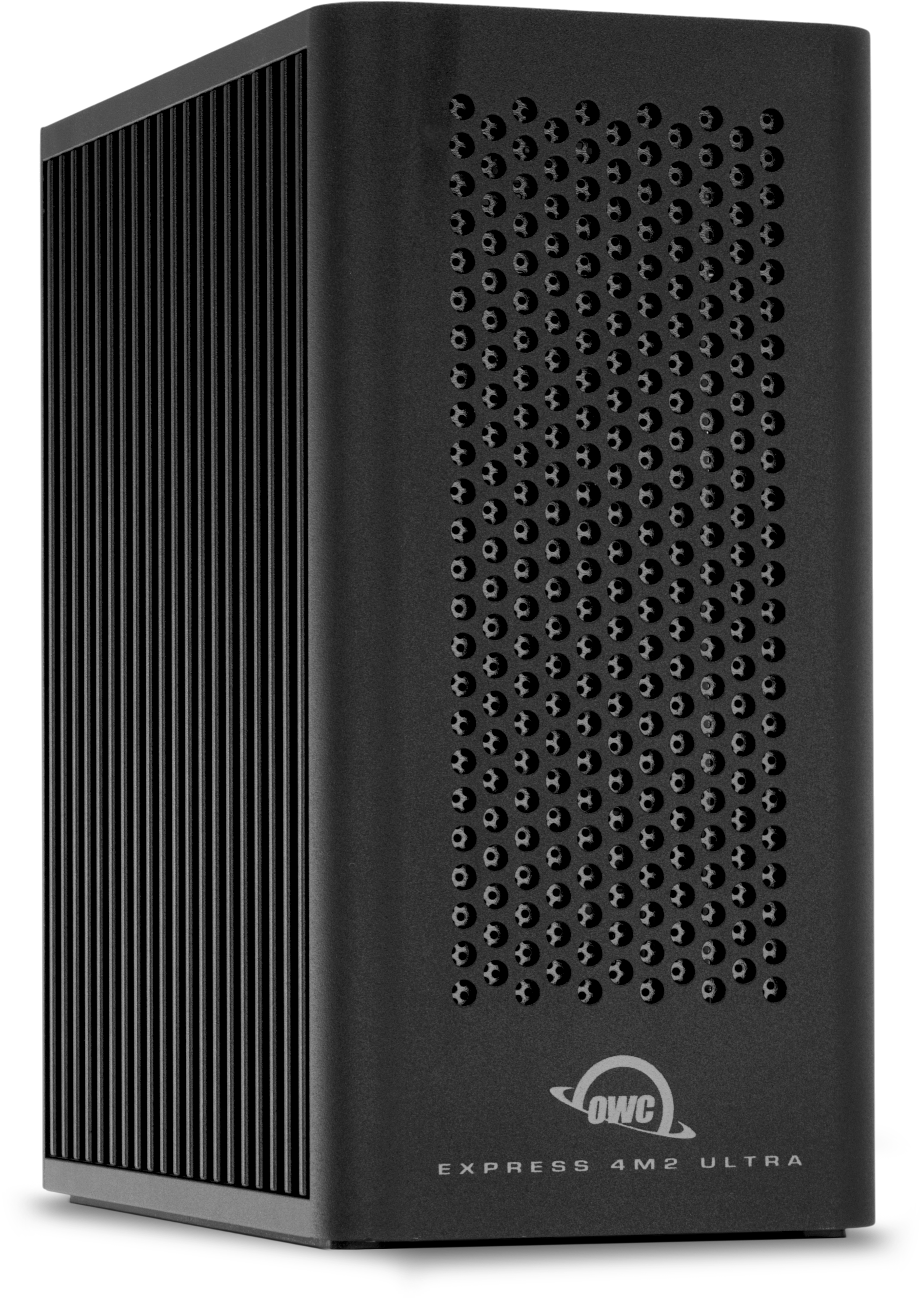 The OWC Express 4M2 Ultra is the first certified Thunderbolt 5 four-slot NVMe M.2 SSD enclosure built for professionals seeking the fastest DIY RAID performance in a compact design It enables customers to install their choice of NVMe M.2 drives and configure in RAID 0, 1, 4, 5, or 10, as well as JBOD, for speeds of up to 6622MB/s. A solid aircraft-grade aluminum body and smart adaptive fan provide effective and quiet thermal management. A second Thunderbolt 5 port enables daisy chaining of up to five additional Thunderbolt devices, including additional Express 4M2 Ultra enclosures that can be combined into a single massive capacity volume. The OWC Express 4M2 Ultra is compatible with Thunderbolt 5, 4, 3 (Mac only), and USB4 systems.
