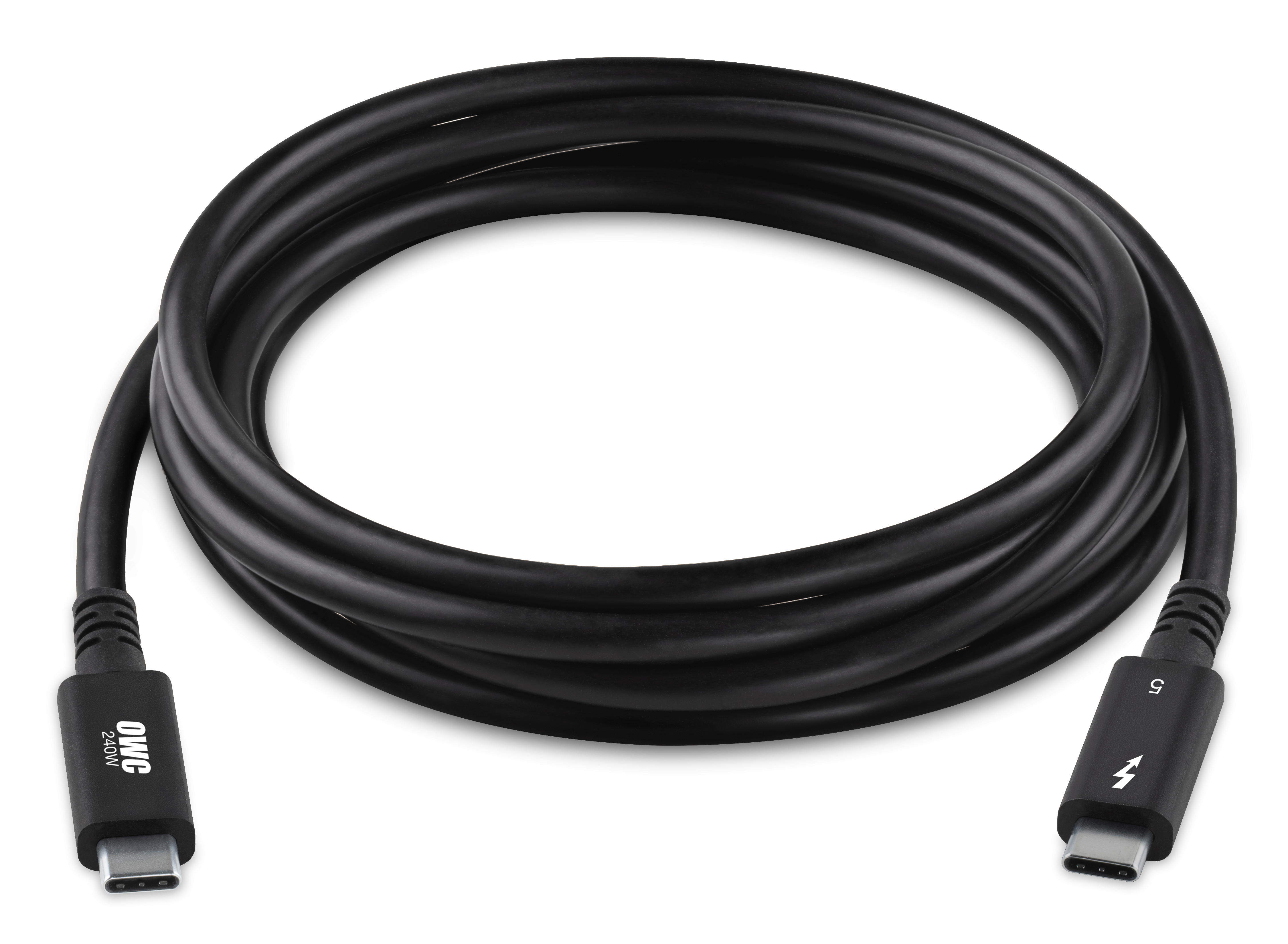 Faster file transfers. More displays at higher resolutions and refresh rates. Ample power to quickly charge the most demanding notebook. Your customers will experience the next generation of remarkable Thunderbolt performance with the OWC Thunderbolt 5 (USB-C) Cable while still retaining the ability to connect to millions of Thunderbolt 4, Thunderbolt 3, USB4, and USB-C computers and devices anywhere. When your customers need an It Just Works™ solution to experience the best performance their computer or device can provide, the OWC