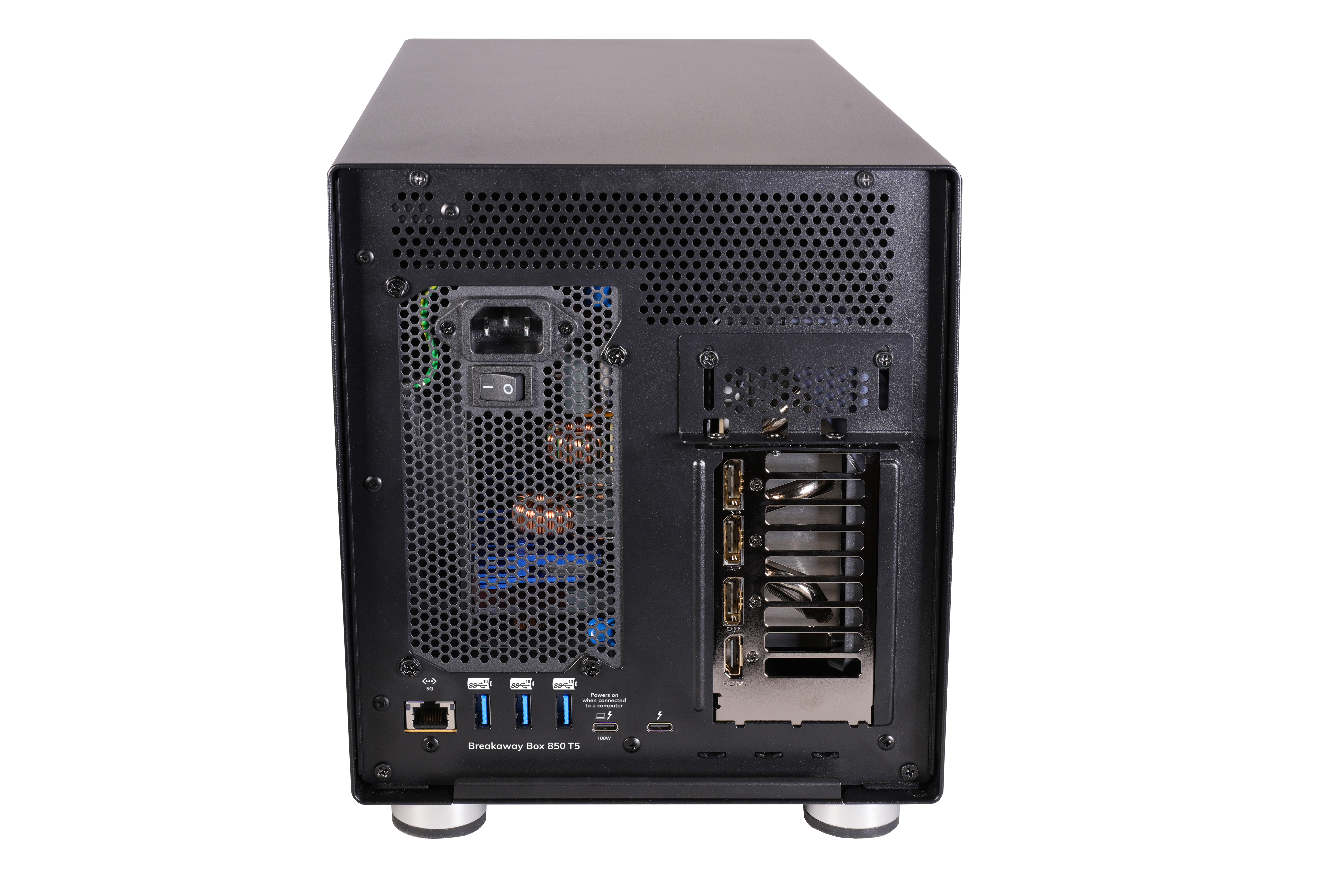Breakaway™ Box 850 T5 brings desktop GPU power to your laptop with a single Thunderbolt™ 5 connection. Designed for video editors, AI developers, medical imaging and gamers, this powerful eGPU expansion enclosure lets you harness the full potential of today’s high-end graphics cards. Install the GPU of your choice, connect it to your compatible Windows 11 laptop or small form factor computer, and instantly unlock the performance needed for fast rendering, demanding AI workflows and smooth 4K gaming. With triple-width GPU support, ultra-quiet operation, and upgrade flexibility, Breakaway Box 850 T5 is built for serious work — and serious play.